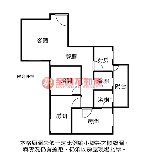 ※本格局圖係未依實際比例繪製之概繪圖。其比例、座向、格局、形狀等,仍須以房屋現場為準。