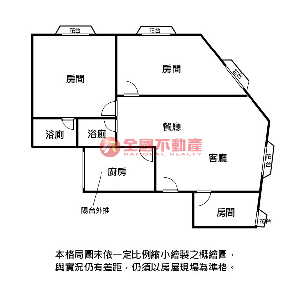 ※本格局圖係未依實際比例繪製之概繪圖。其比例、座向、格局、形狀等,仍須以房屋現場為準。