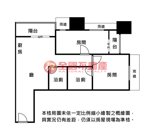 ※本格局圖係未依實際比例繪製之概繪圖。其比例、座向、格局、形狀等,仍須以房屋現場為準。