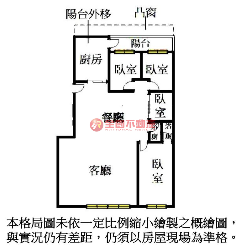 ※本格局圖係未依實際比例繪製之概繪圖。其比例、座向、格局、形狀等,仍須以房屋現場為準。