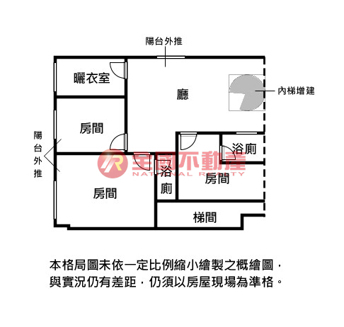 ※本格局圖係未依實際比例繪製之概繪圖。其比例、座向、格局、形狀等,仍須以房屋現場為準。