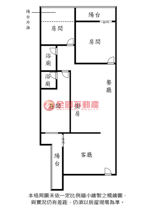 ※本格局圖係未依實際比例繪製之概繪圖。其比例、座向、格局、形狀等,仍須以房屋現場為準。