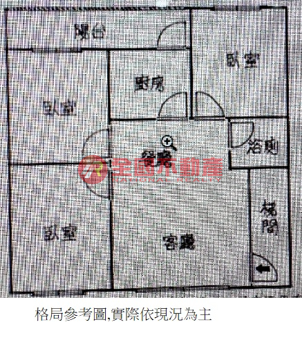※本格局圖係未依實際比例繪製之概繪圖。其比例、座向、格局、形狀等,仍須以房屋現場為準。