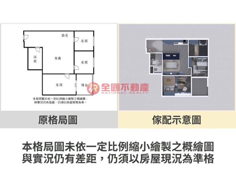 ※本格局圖係未依實際比例繪製之概繪圖。其比例、座向、格局、形狀等,仍須以房屋現場為準。