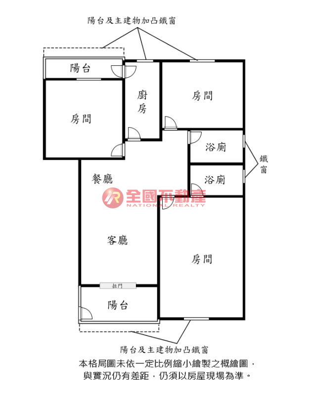 ※本格局圖係未依實際比例繪製之概繪圖。其比例、座向、格局、形狀等,仍須以房屋現場為準。