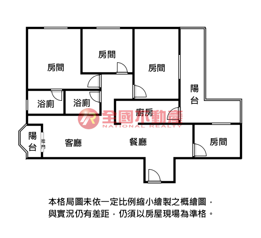 ※本格局圖係未依實際比例繪製之概繪圖。其比例、座向、格局、形狀等,仍須以房屋現場為準。