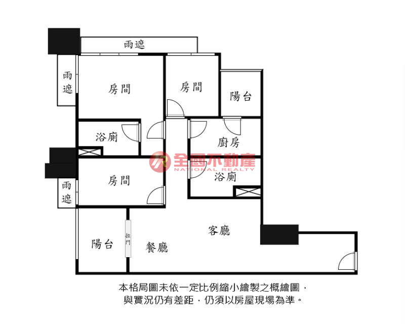 ※本格局圖係未依實際比例繪製之概繪圖。其比例、座向、格局、形狀等,仍須以房屋現場為準。