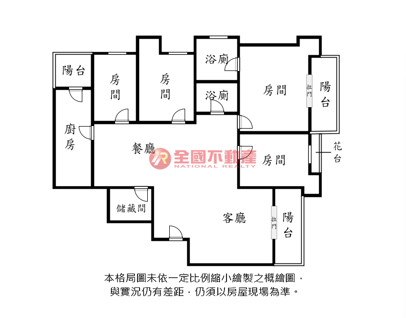 ※本格局圖係未依實際比例繪製之概繪圖。其比例、座向、格局、形狀等,仍須以房屋現場為準。