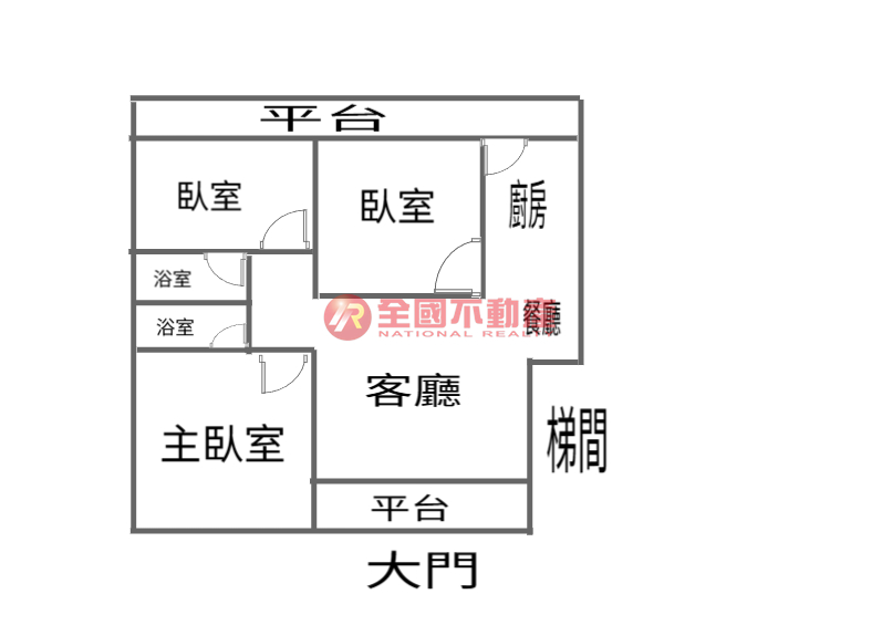 ※本格局圖係未依實際比例繪製之概繪圖。其比例、座向、格局、形狀等,仍須以房屋現場為準。