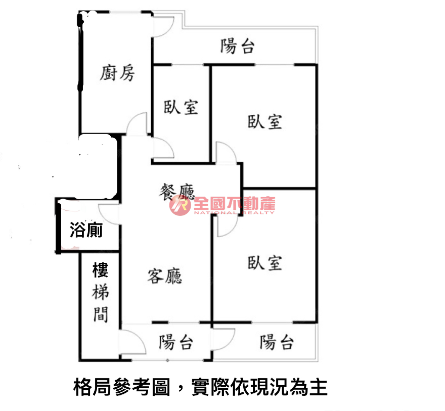 ※本格局圖係未依實際比例繪製之概繪圖。其比例、座向、格局、形狀等,仍須以房屋現場為準。
