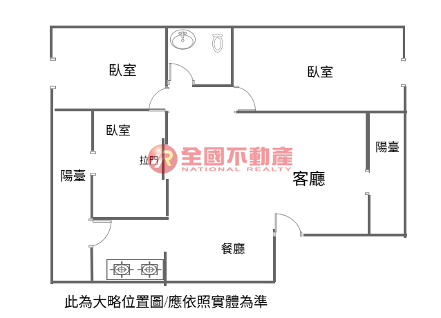 ※本格局圖係未依實際比例繪製之概繪圖。其比例、座向、格局、形狀等,仍須以房屋現場為準。