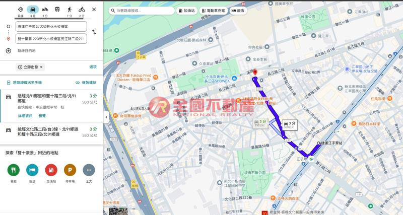 捷運江子翠站約500公尺,依Google步行約3分鐘