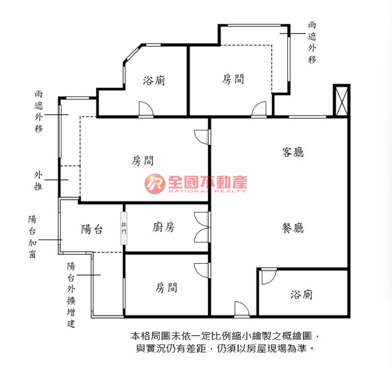 ※本格局圖係未依實際比例繪製之概繪圖。其比例、座向、格局、形狀等,仍須以房屋現場為準。