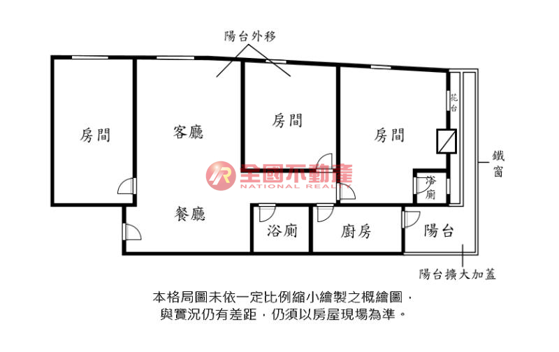 ※本格局圖係未依實際比例繪製之概繪圖。其比例、座向、格局、形狀等,仍須以房屋現場為準。