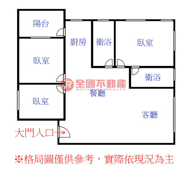 ※本格局圖係未依實際比例繪製之概繪圖。其比例、座向、格局、形狀等,仍須以房屋現場為準。