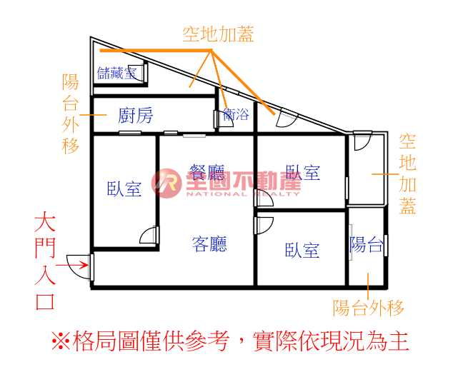 ※本格局圖係未依實際比例繪製之概繪圖。其比例、座向、格局、形狀等,仍須以房屋現場為準。