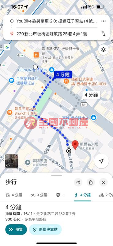 捷運江子翠站約300公尺,依Google步行約4分鐘