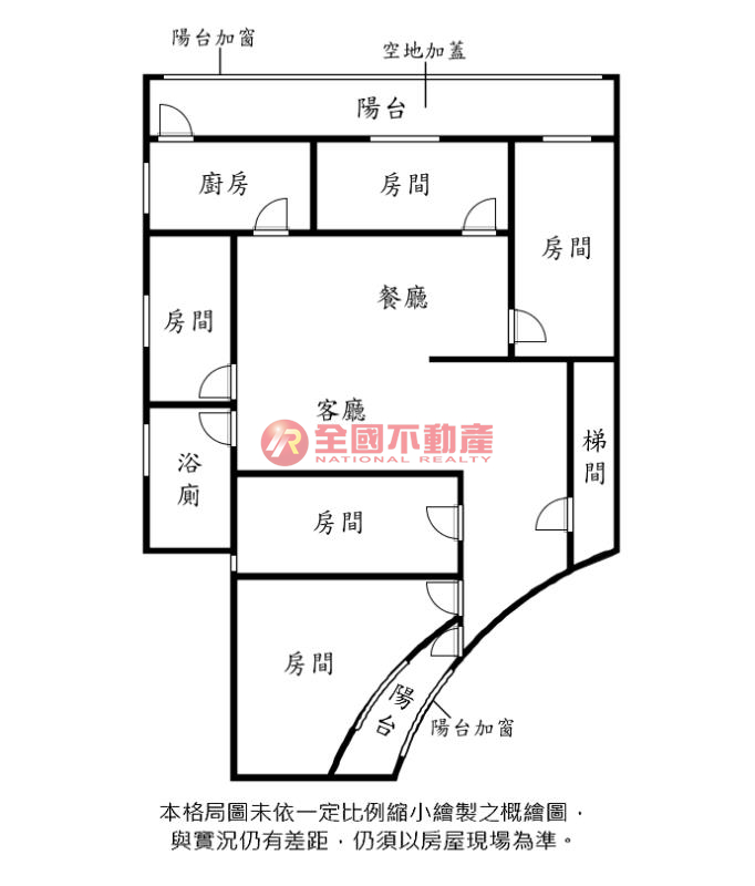 ※本格局圖係未依實際比例繪製之概繪圖。其比例、座向、格局、形狀等,仍須以房屋現場為準。