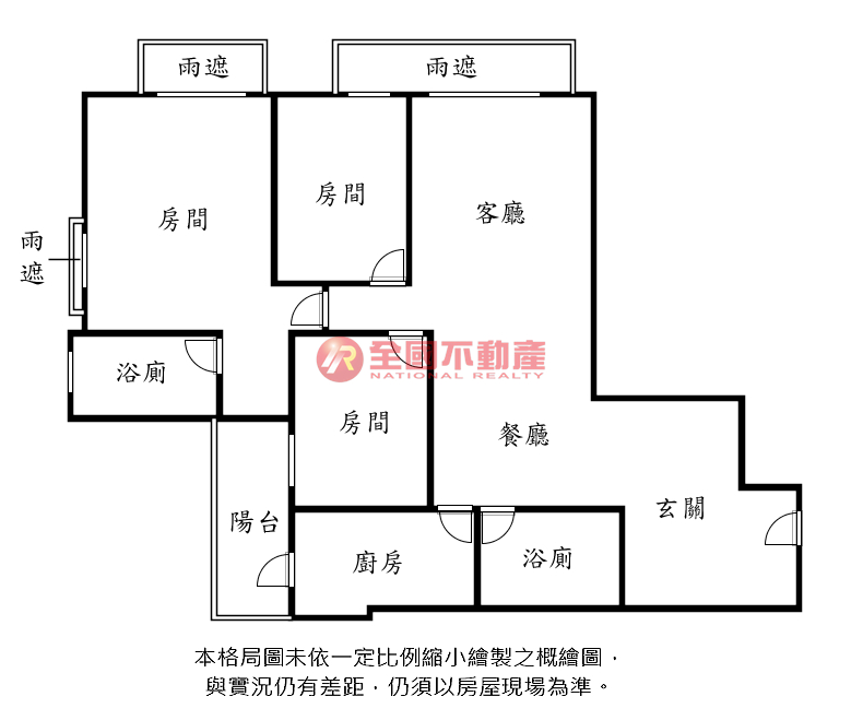 ※本格局圖係未依實際比例繪製之概繪圖。其比例、座向、格局、形狀等,仍須以房屋現場為準。