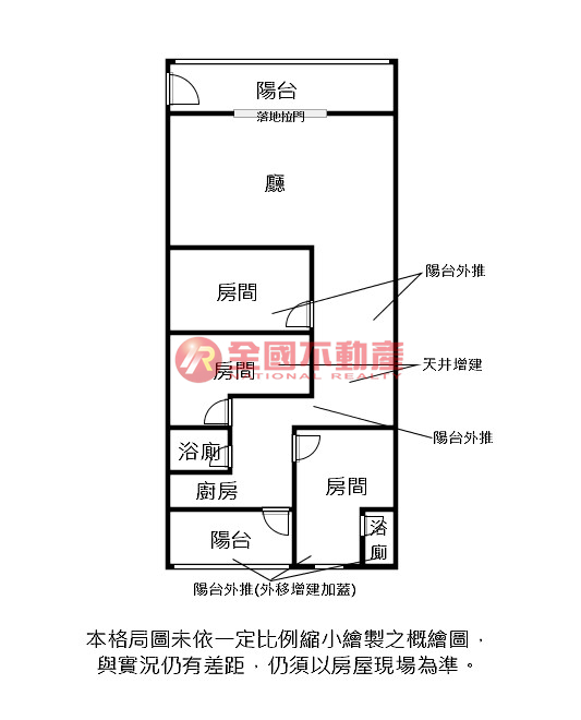 ※本格局圖係未依實際比例繪製之概繪圖。其比例、座向、格局、形狀等,仍須以房屋現場為準。
