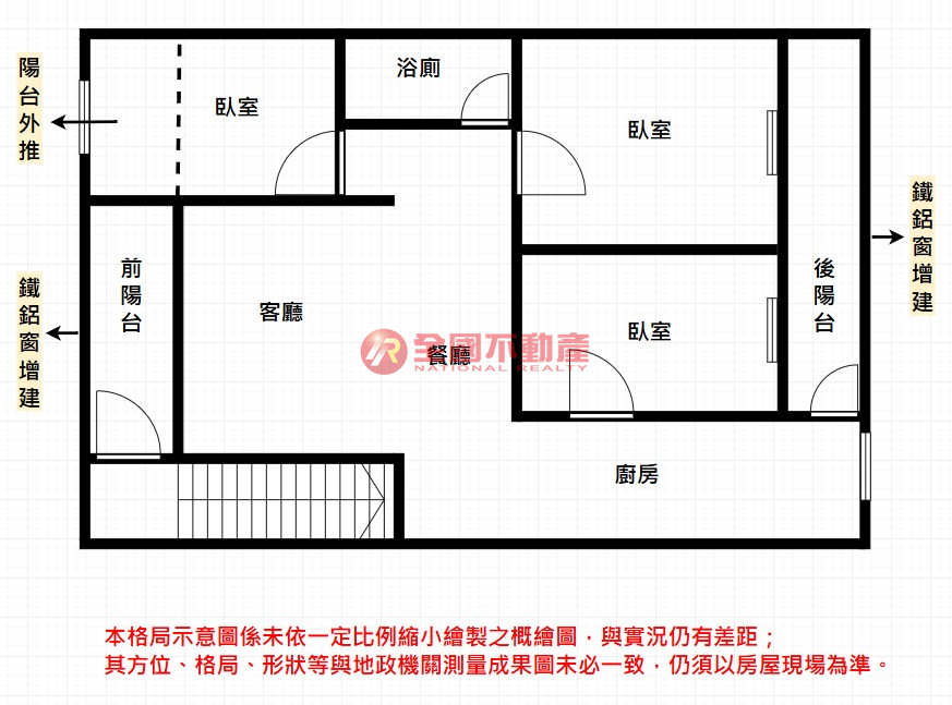 ※本格局圖係未依實際比例繪製之概繪圖。其比例、座向、格局、形狀等,仍須以房屋現場為準。