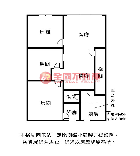 ※本格局圖係未依實際比例繪製之概繪圖。其比例、座向、格局、形狀等,仍須以房屋現場為準。