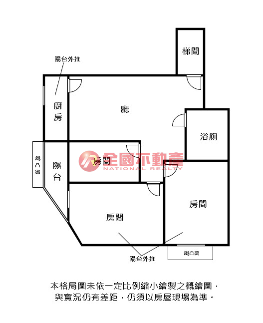 ※本格局圖係未依實際比例繪製之概繪圖。其比例、座向、格局、形狀等,仍須以房屋現場為準。