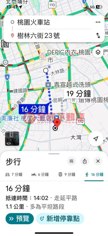 近延平公園、桃園火車站依Google地圖1.1公里(步行約16分鐘)