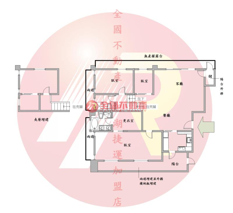 ※本格局圖係未依實際比例繪製之概繪圖。其比例、座向、格局、形狀等,仍須以房屋現場為準。
