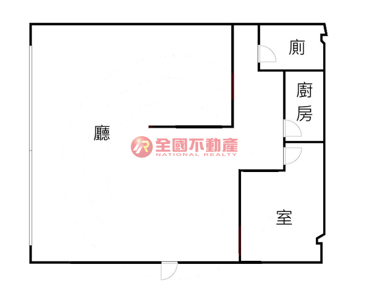 格局:1廳1衛1室