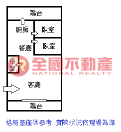 ※本格局圖係未依實際比例繪製之概繪圖。其比例、座向、格局、形狀等,仍須以房屋現場為準。