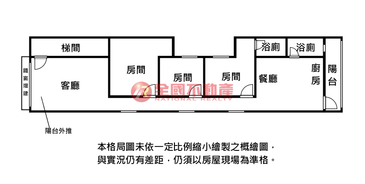 ※本格局圖係未依實際比例繪製之概繪圖。其比例、座向、格局、形狀等,仍須以房屋現場為準。