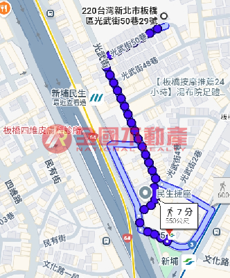 捷運新埔站約400公尺,依Google步行約5分鐘;