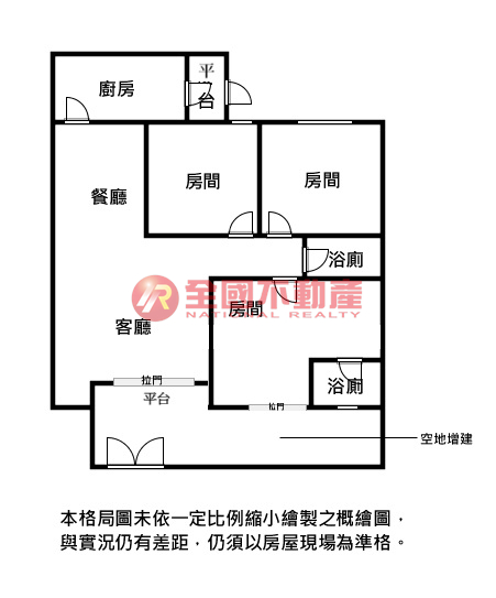 ※本格局圖係未依實際比例繪製之概繪圖。其比例、座向、格局、形狀等,仍須以房屋現場為準。