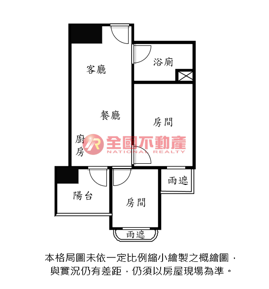 ※本格局圖係未依實際比例繪製之概繪圖。其比例、座向、格局、形狀等,仍須以房屋現場為準。