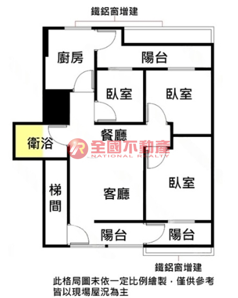 ※本格局圖係未依實際比例繪製之概繪圖。其比例、座向、格局、形狀等,仍須以房屋現場為準。