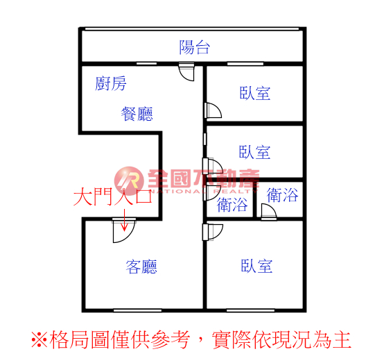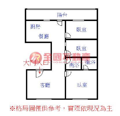 ※本格局圖係未依實際比例繪製之概繪圖。其比例、座向、格局、形狀等,仍須以房屋現場為準。