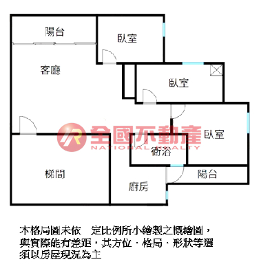 ※本格局圖係未依實際比例繪製之概繪圖。其比例、座向、格局、形狀等,仍須以房屋現場為準。