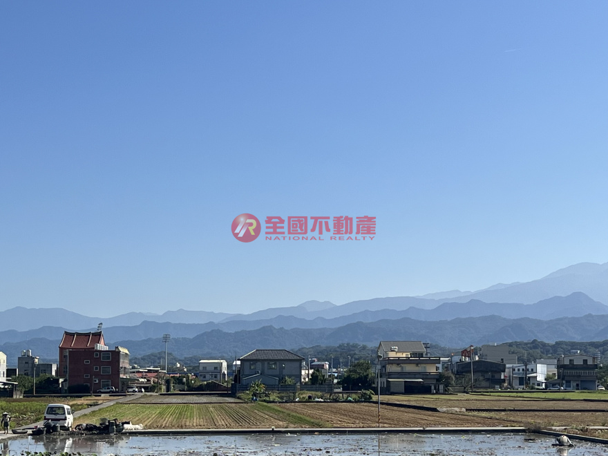環境開闊視野極佳,前方水田倒映,遠方層層山巒堆疊,景色如畫!