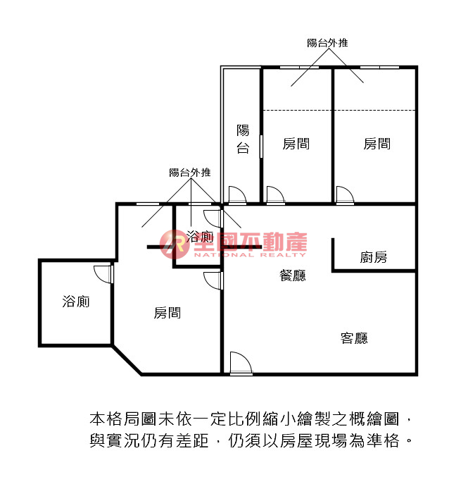 ※本格局圖係未依實際比例繪製之概繪圖。其比例、座向、格局、形狀等,仍須以房屋現場為準。