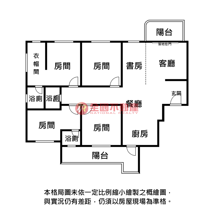 ※本格局圖係未依實際比例繪製之概繪圖。其比例、座向、格局、形狀等,仍須以房屋現場為準。