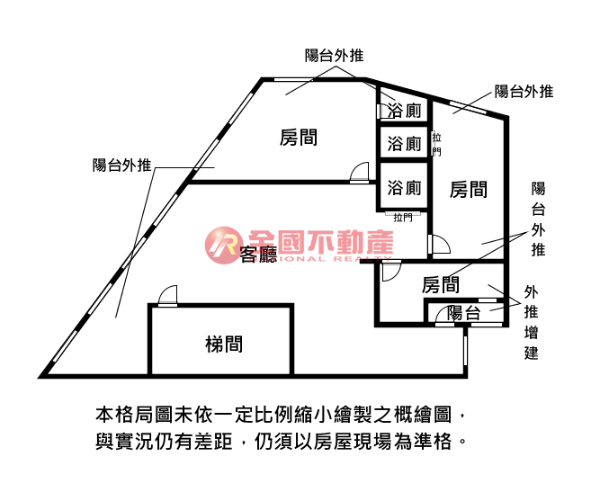 ※本格局圖係未依實際比例繪製之概繪圖。其比例、座向、格局、形狀等,仍須以房屋現場為準。