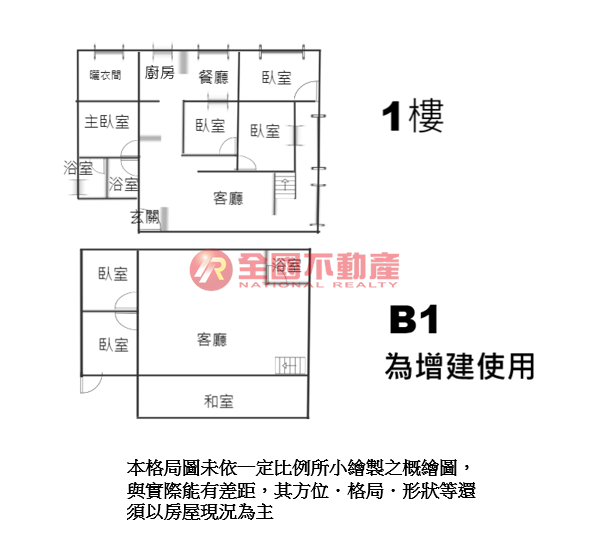 ※本格局圖係未依實際比例繪製之概繪圖。其比例、座向、格局、形狀等,仍須以房屋現場為準。