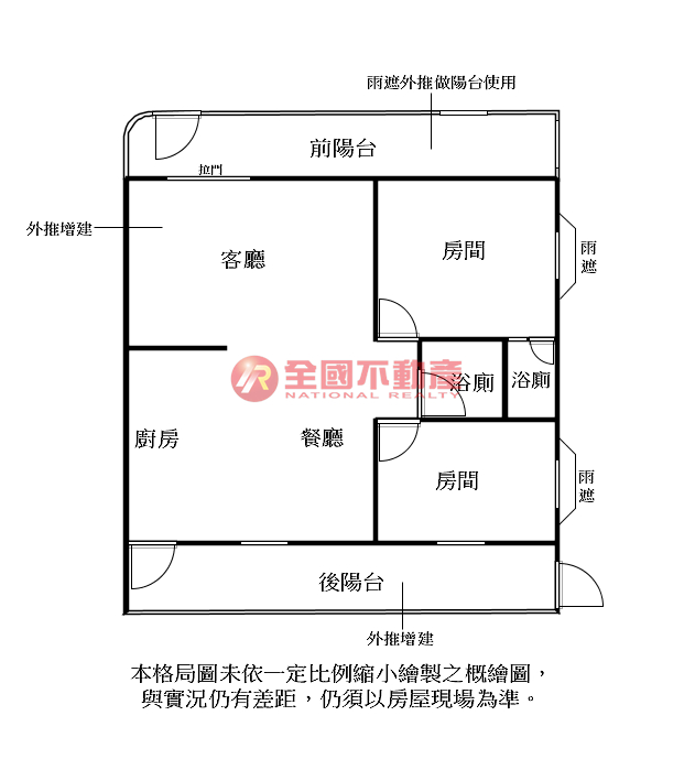 ※本格局圖係未依實際比例繪製之概繪圖。其比例、座向、格局、形狀等,仍須以房屋現場為準。