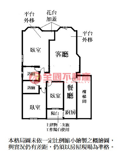 ※本格局圖係未依實際比例繪製之概繪圖。其比例、座向、格局、形狀等,仍須以房屋現場為準。