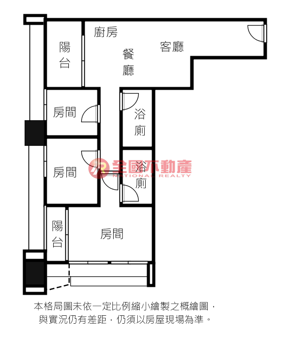※本格局圖係未依實際比例繪製之概繪圖。其比例、座向、格局、形狀等,仍須以房屋現場為準。