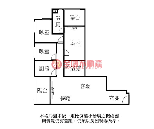※本格局圖係未依實際比例繪製之概繪圖。其比例、座向、格局、形狀等,仍須以房屋現場為準。