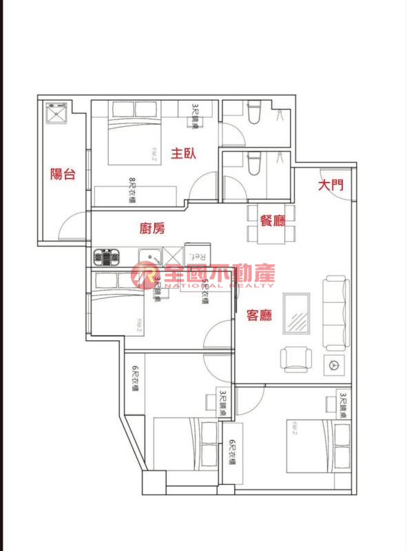 ※本格局圖係未依實際比例繪製之概繪圖。其比例、座向、格局、形狀等,仍須以房屋現場為準。