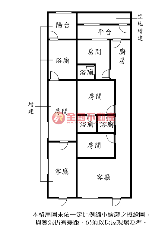 ※本格局圖係未依實際比例繪製之概繪圖。其比例、座向、格局、形狀等,仍須以房屋現場為準。