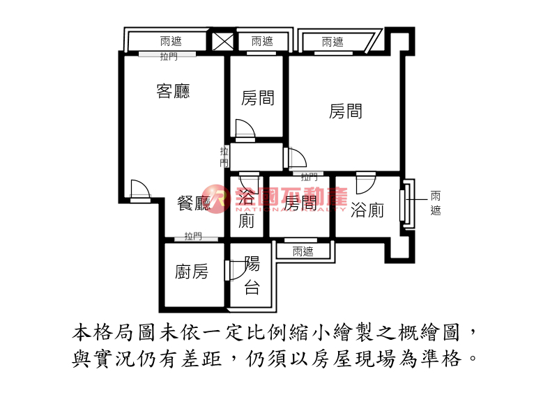 ※本格局圖係未依實際比例繪製之概繪圖。其比例、座向、格局、形狀等,仍須以房屋現場為準。